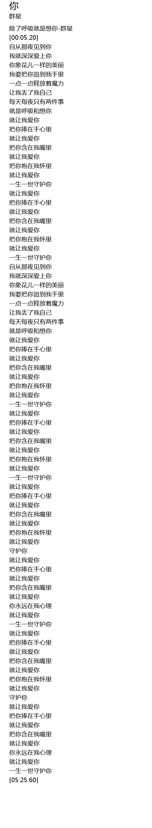 | [00:00.20] | 除了呼吸就是想你-群星 |