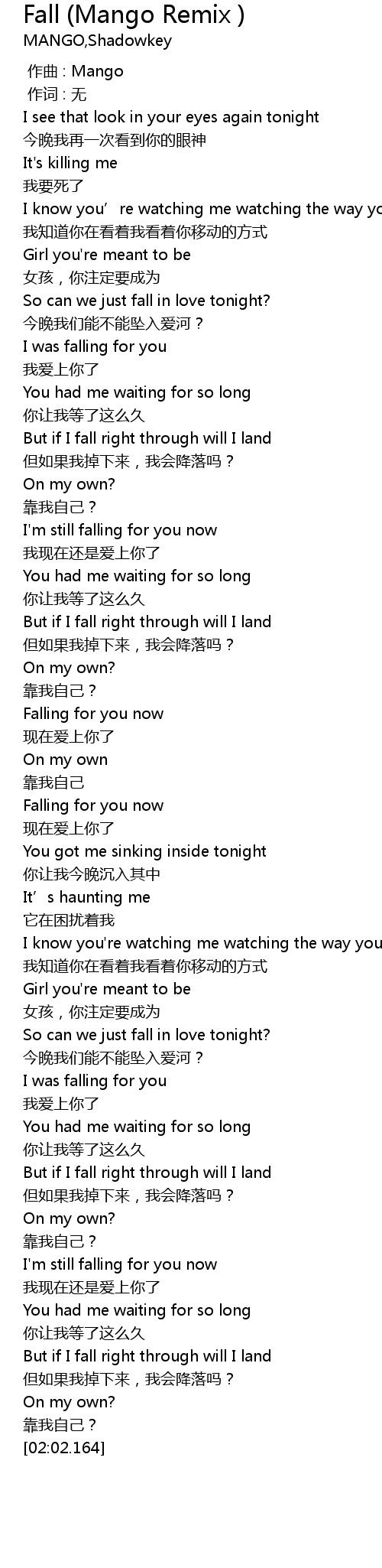 | [00:48.811] | I' m still falling for you now |