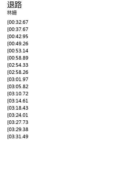 | [04:23.01][03:31.49][01:43.64] | 才了解阮着找 退路 |
