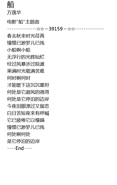 | [00:41.81] | xiǎo chuán a xiǎo chuán |