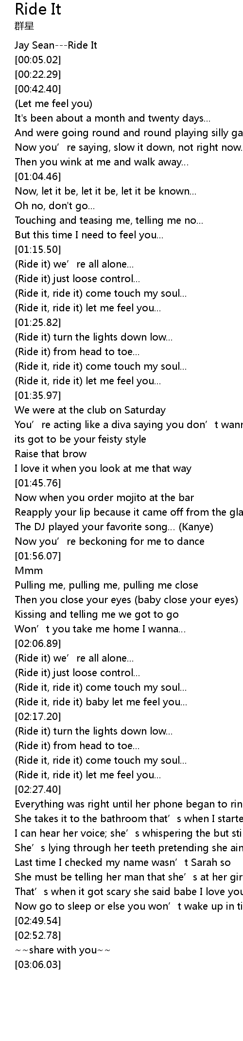 | [01:33.70] | Ride it, ride it let me feel you... |