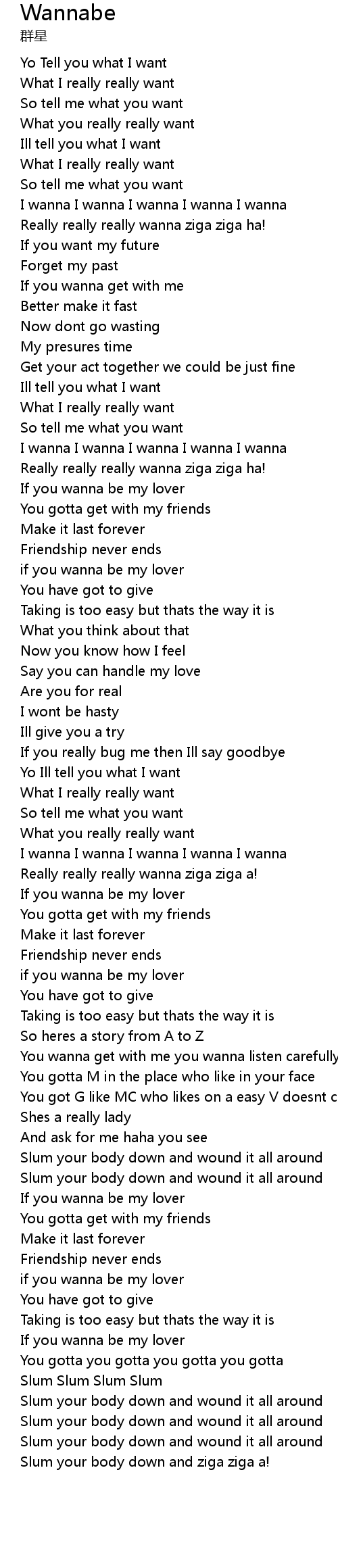 | [01:23.410] | I wanna I wanna I wanna I wanna I wanna |