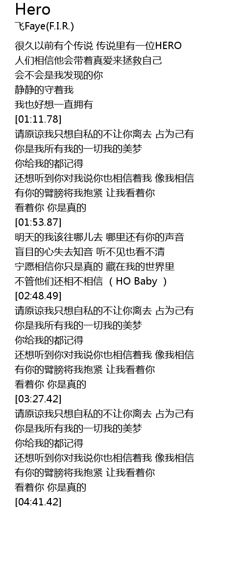 | [02:41.15] | bu guan ta men hai xiang bu xiang xin HO Baby |