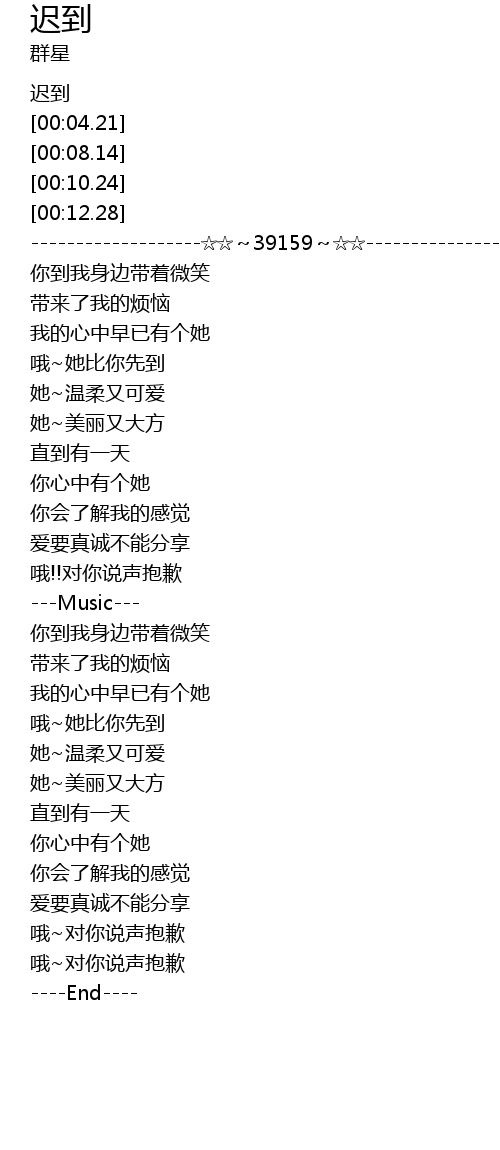 | [00:02.28] | 迟到 |