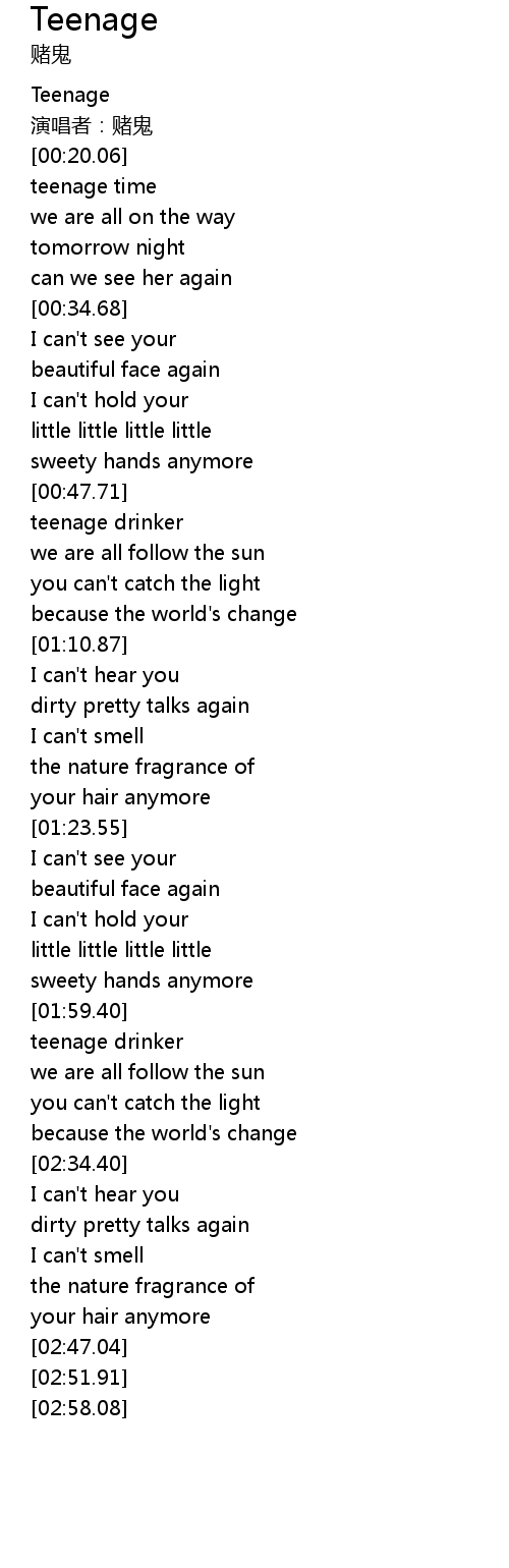 | [00:59.57] | teenage drinker |