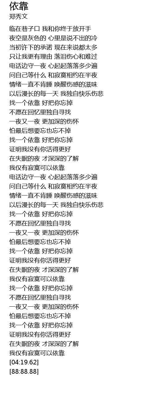 | [04:12.62] | 我仅有寂寞可以依靠 |