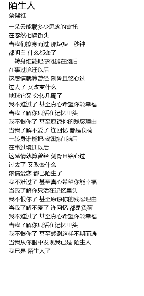 | [03:35.37] | 我已是 陌生人了 |