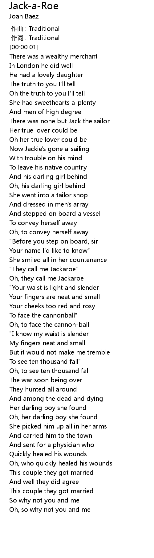| [01:22.01] | " They call me Jackaroe" |