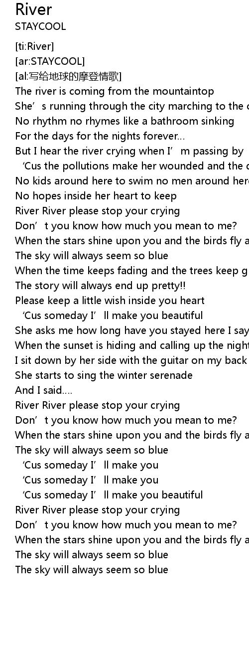 | [00:39.41] | But I hear the river crying when I’m passing by |
