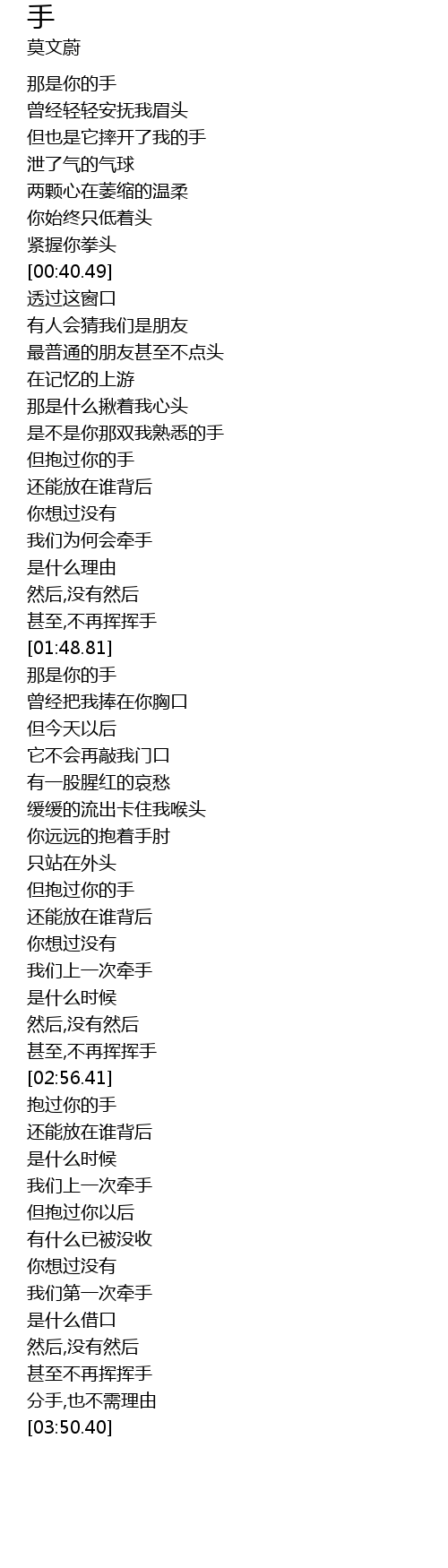 [03:42.63] fēn shǒu, yě bù xū lǐ yóu