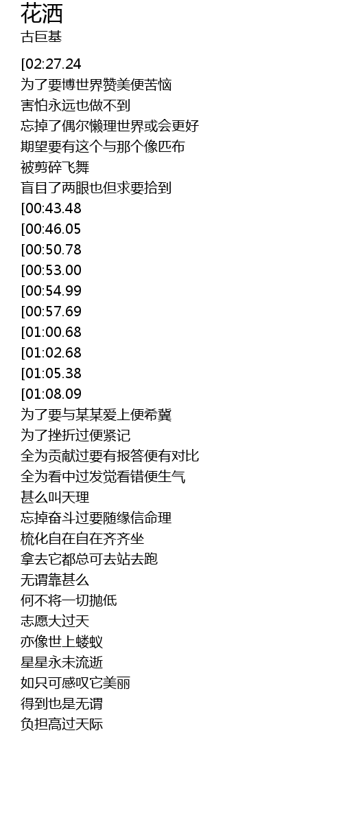 | [02:21.76][01:08.09] | 拿花洒洗礼 |