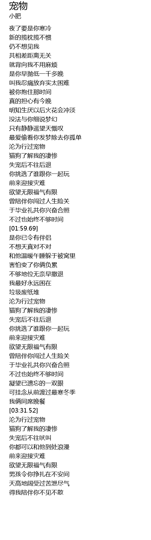 | [02:41.35] | 猫狗了解我的凄惨 |