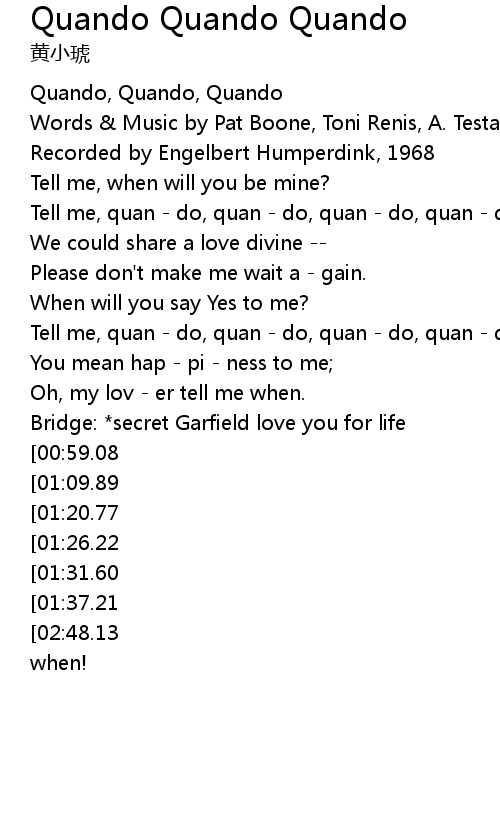 [00:42.79] Tell me, quan - do, quan - do, quan - do, quan - do?