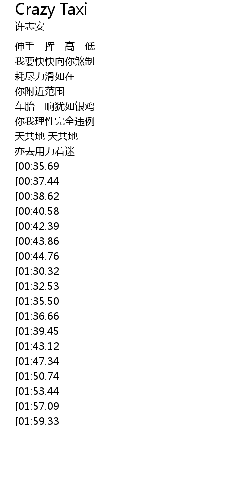 | [02:33.49][01:50.74][01:06.51] | 掉头加油甩尾 |