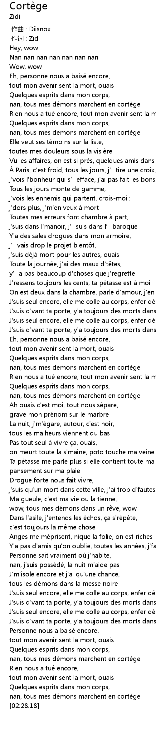 | [02:25.66] | nan, tous mes démons marchent en cortège |