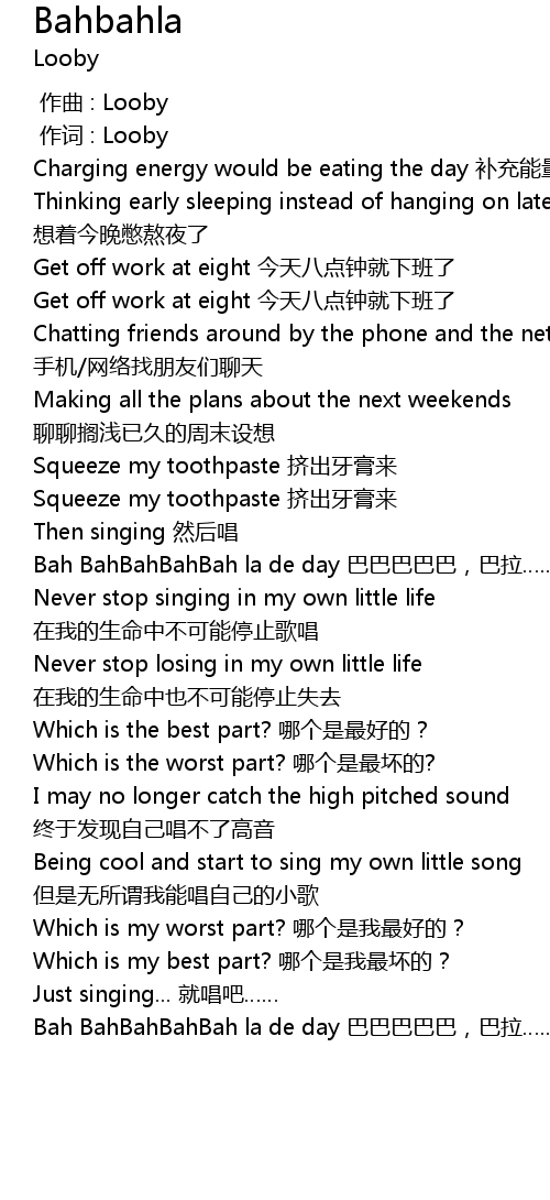 | [00:36.399] | Bah BahBahBahBah la de day 巴巴巴巴巴,巴拉…… |