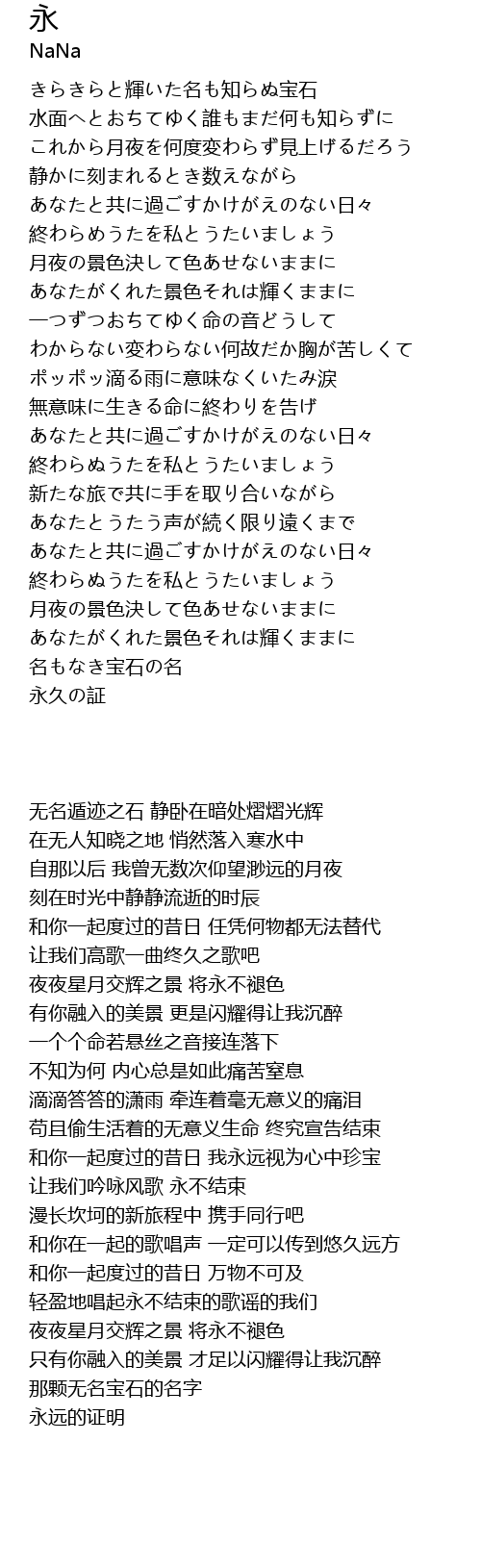 | [00:13.580] | きらきらと輝いた名も知らぬ宝石 |