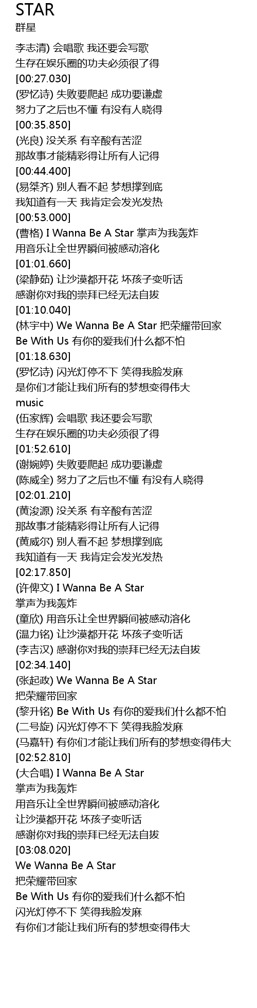 | [02:35.170] | zhang qi zheng We Wanna Be A Star |