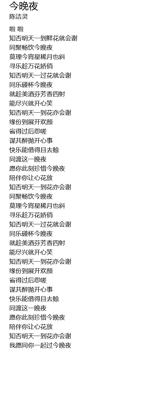 | [00:47.670] | 知否明天一到花亦会谢 |
