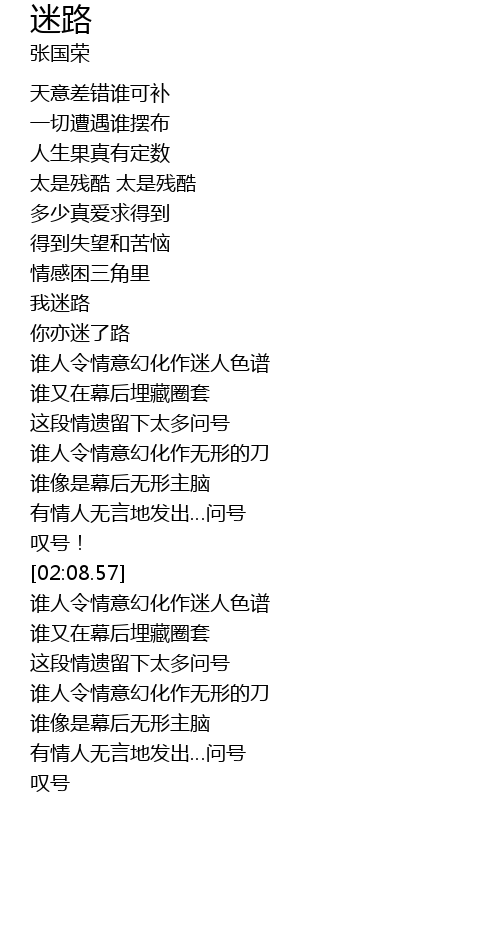 | [02:48.20] | zhè duàn qíng yí liú xià tài duō wèn hào |