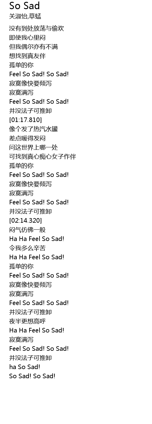 | [03:35.90] | Feel So Sad! So Sad! |