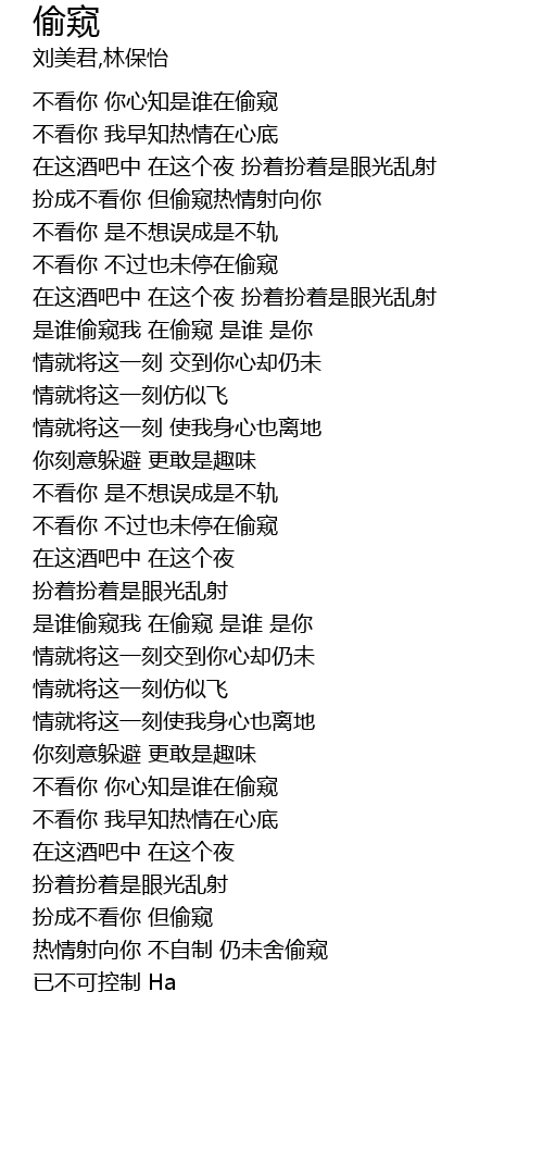 [00:38.53] 扮成不看你 但偷窥热情射向你