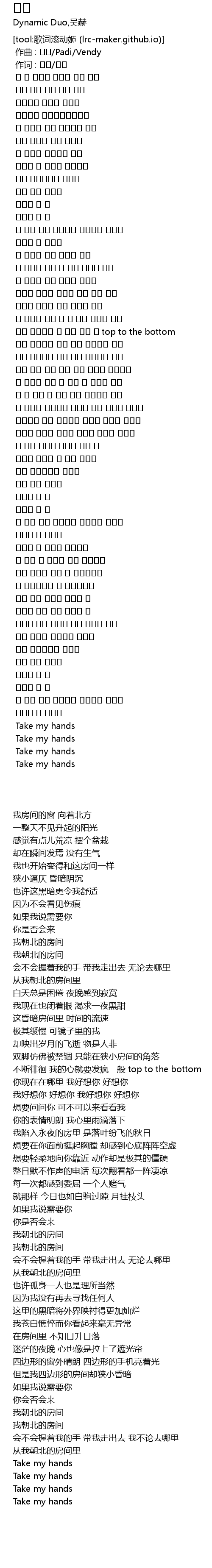 | [02:14.880] | 会不会握着我的手 带我走出去 无论去哪里 |