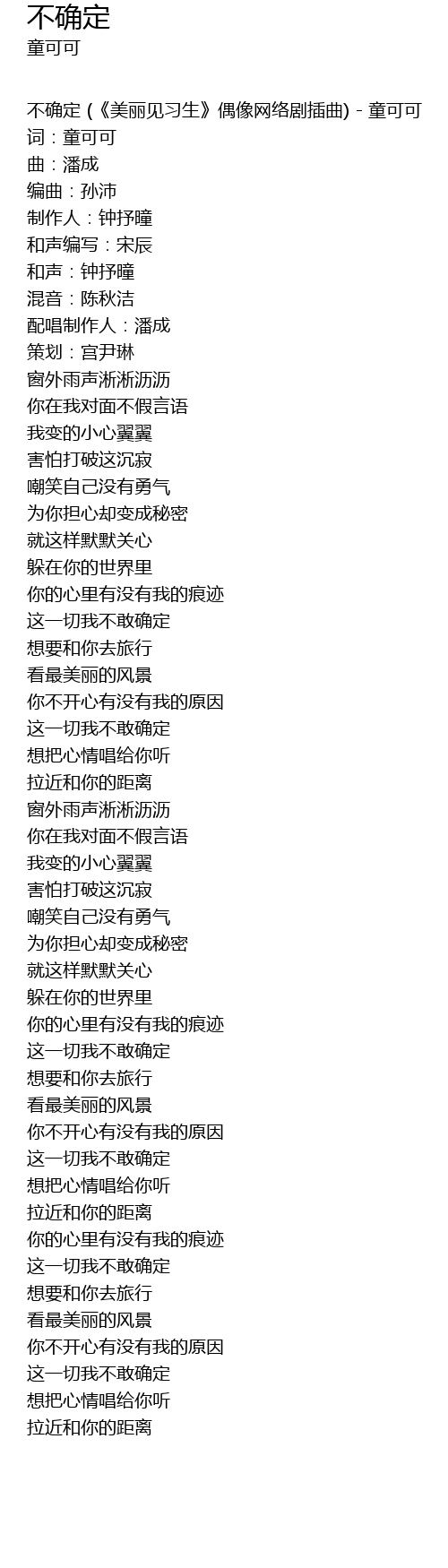 | 不确定 (《美丽见习生》偶像网络剧插曲) - 童可可 | |