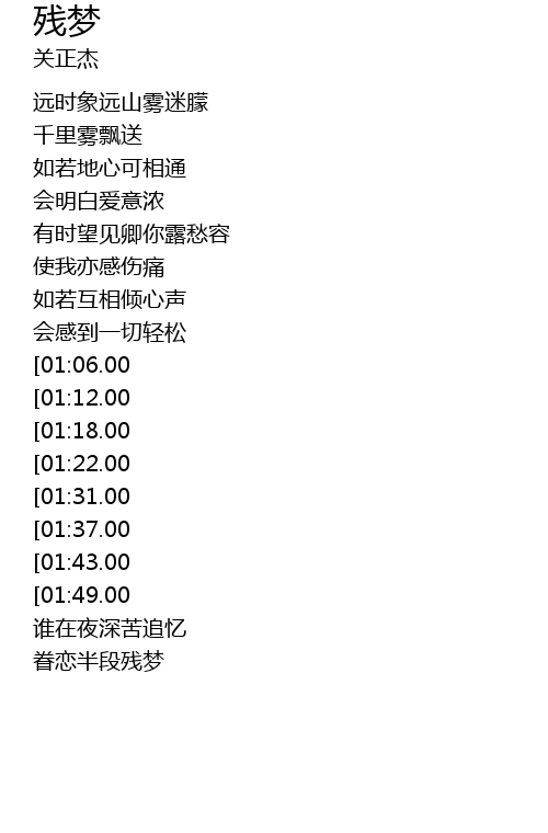 | [03:07.00][01:49.00] | 我枉有热情梦 |