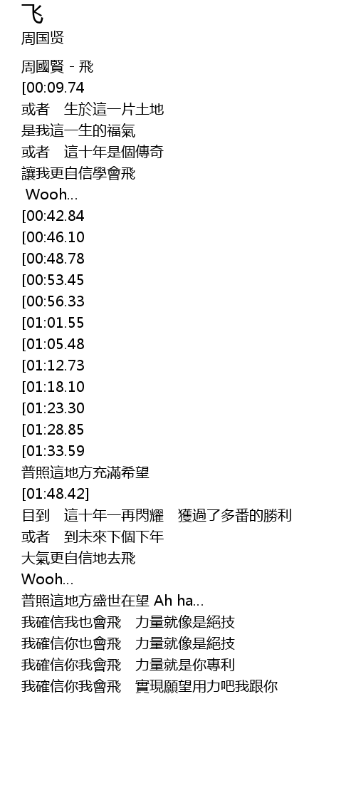 | [00:00.00] | 周國賢 - 飛 |