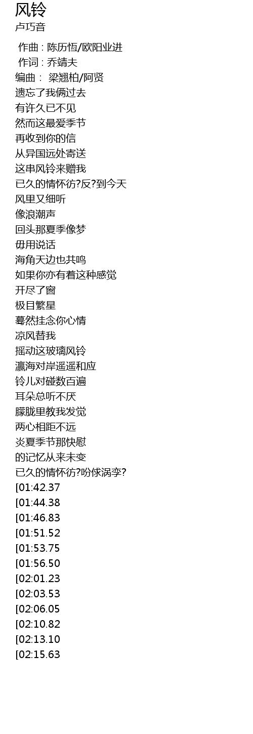 | [02:44.49][01:44.38] | 阵阵铃声 |