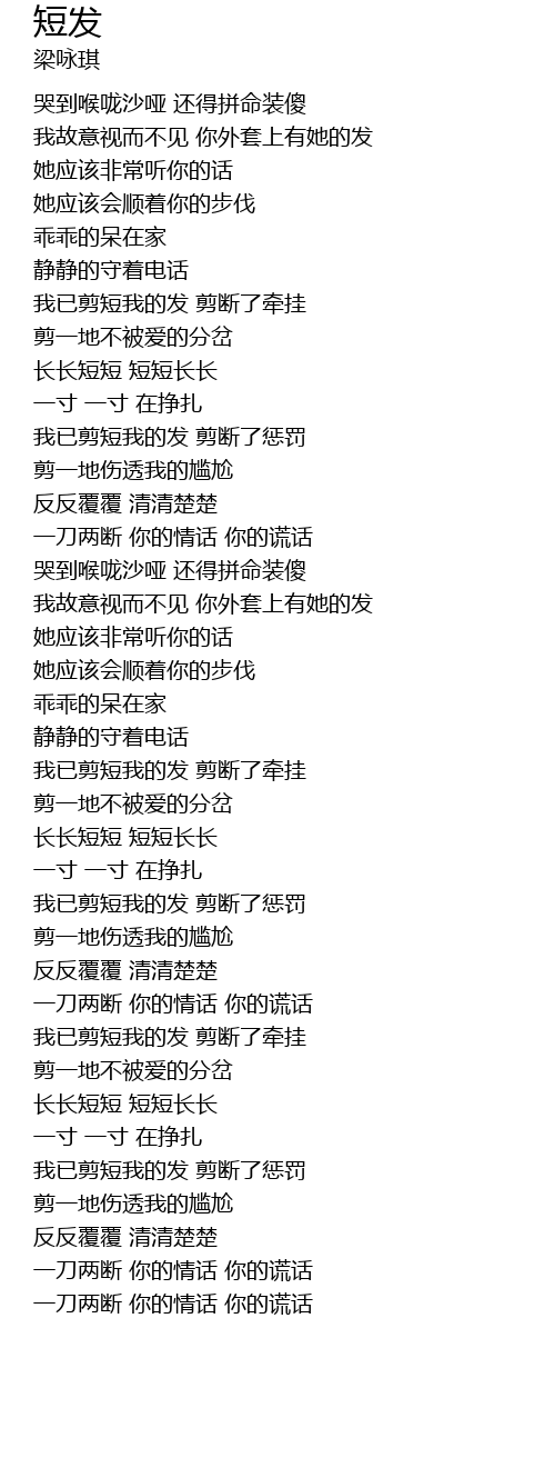| [02:54.47] | 我已剪短我的发 剪断了牵挂 |