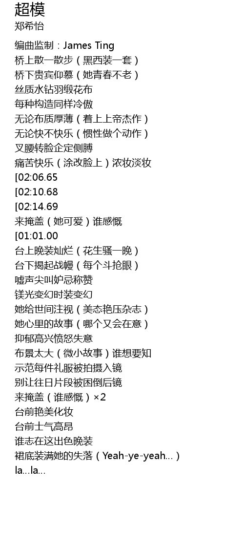 | [00:01.50] | biān qǔ jiān zhì: James Ting |