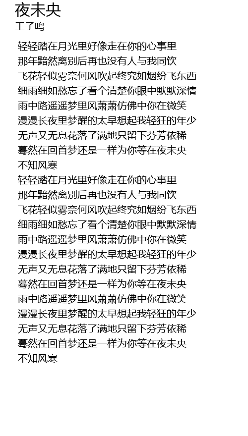 | [01:45.06] | 蓦然在回首梦还是一样为你等在夜未央 |