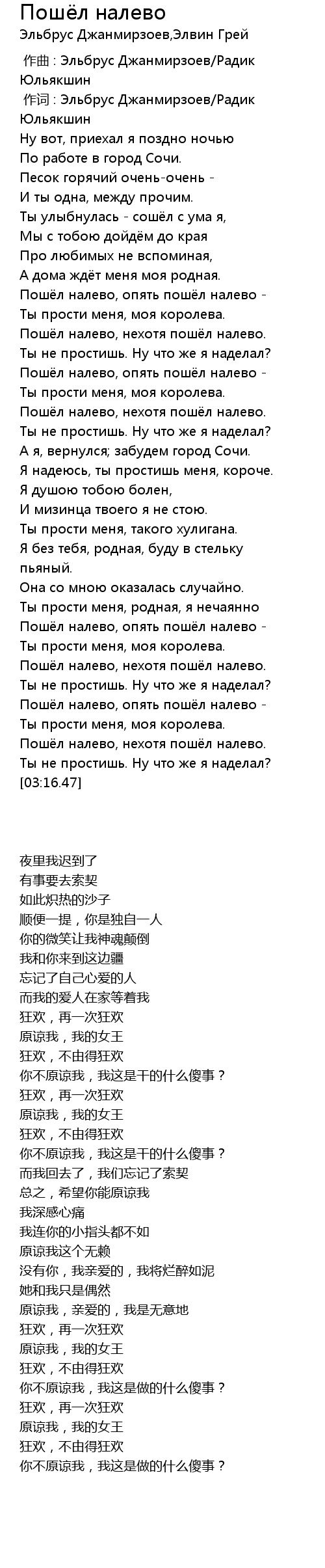 | 歌曲 | Пошёл налево |