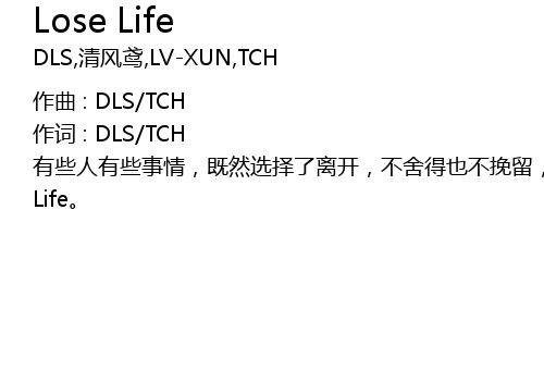 | 有些人有些事情,既然选择了离开,不舍得也不挽留,别再因为谁Lose Life。 |