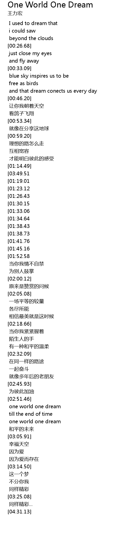 | [03:59.92][01:26.43] | he ping de wei lai |