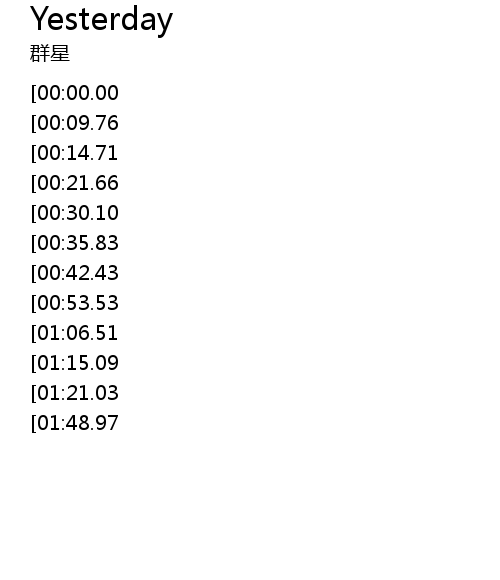 | [01:50.65][00:00.00] | Yesterday, all my troubles seemed so far away |