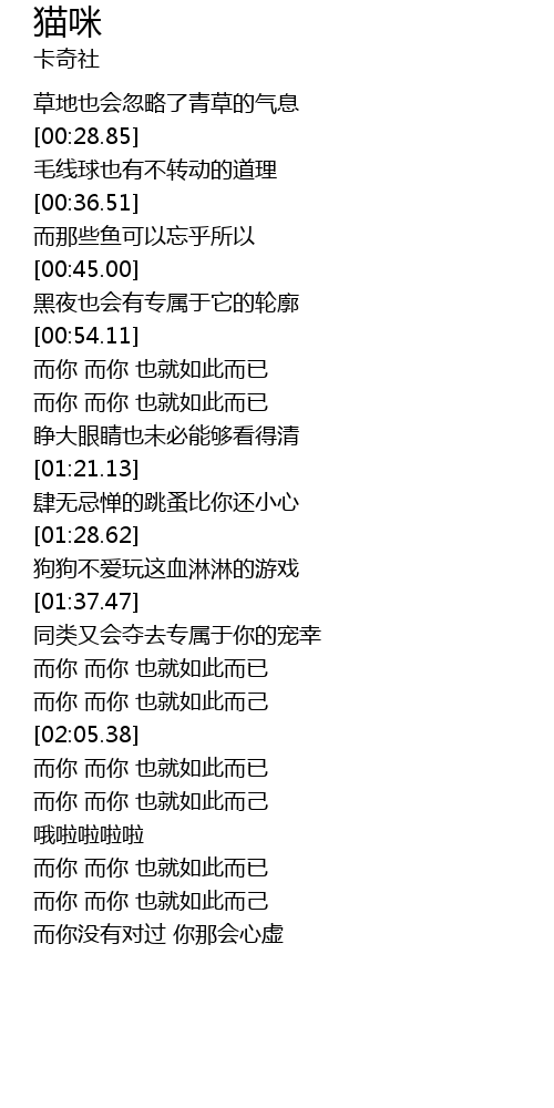 | [01:48.04] | 而你 而你 也就如此而已 |