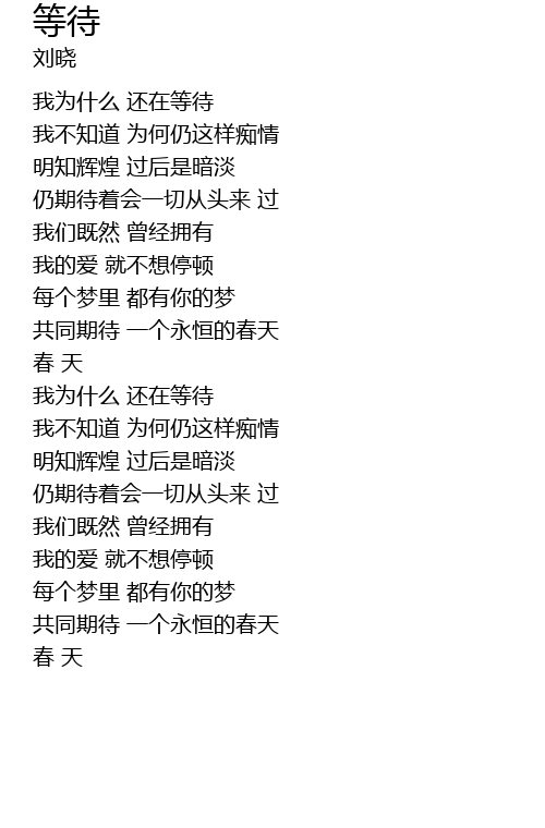 | [01:35.920] | 共同期待 一个永恒的春天 |