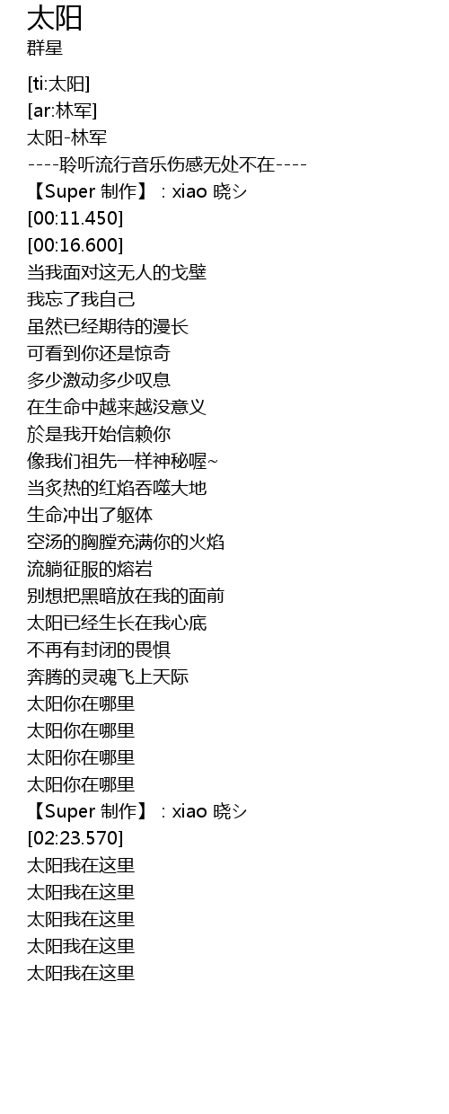 | [00:01.290] | 太阳-林军 |