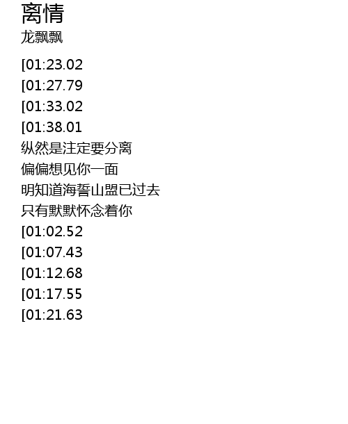 | [02:23.87][01:23.02][00:21.76] | 纵然是往事如云烟 |