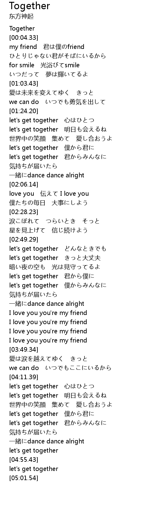 | [04:23.23] | 世界中の笑顔 集めて 愛し合おうよ |