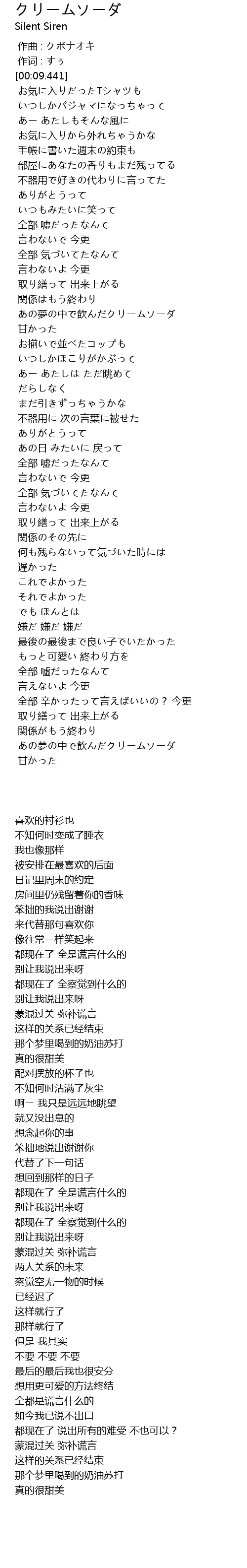 | [03:25.177] | あの夢の中で飲んだクリームソーダ |