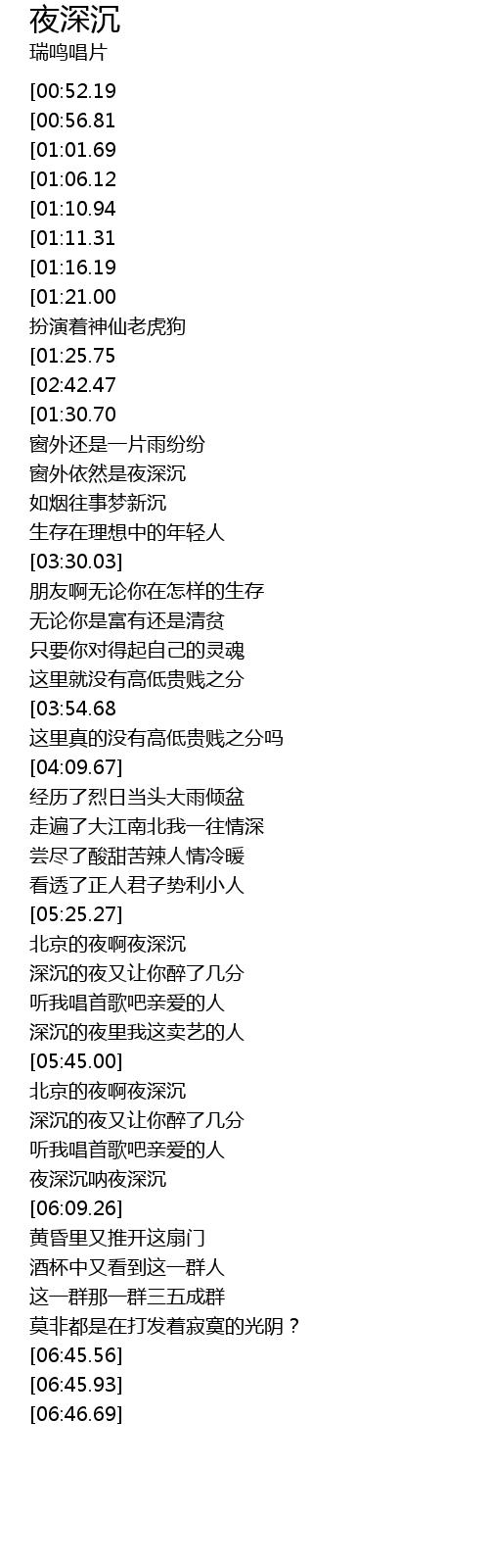 | [05:45.45] | 北京的夜啊夜深沉 |