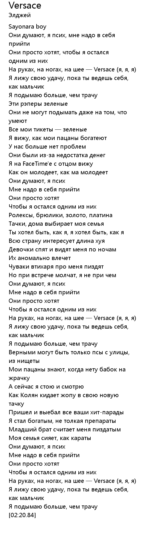 [00:18.59] На руках, на ногах, на шее — Versace (я, я, я)