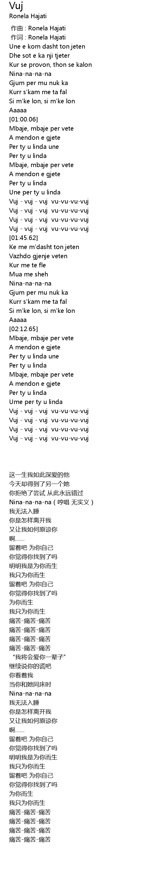 | [00:00.000] | zuò qǔ : Ronela Hajati |