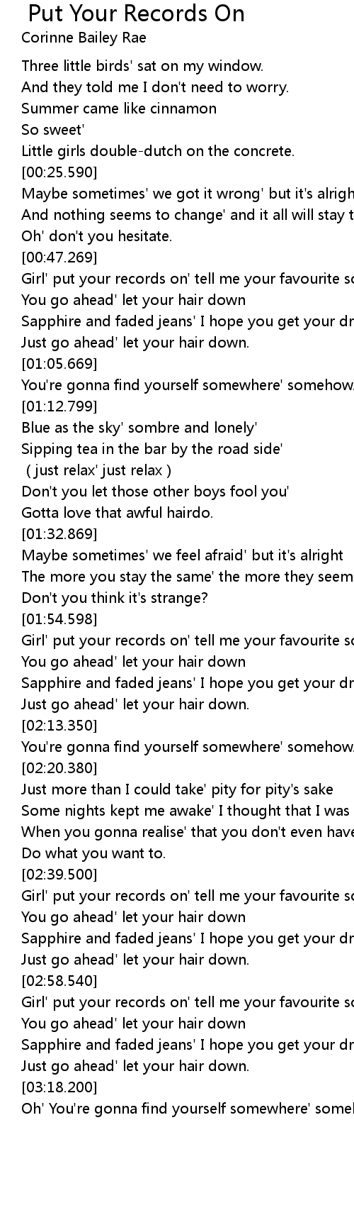| [02:40.100] | Girl' put your records on' tell me your favourite song |