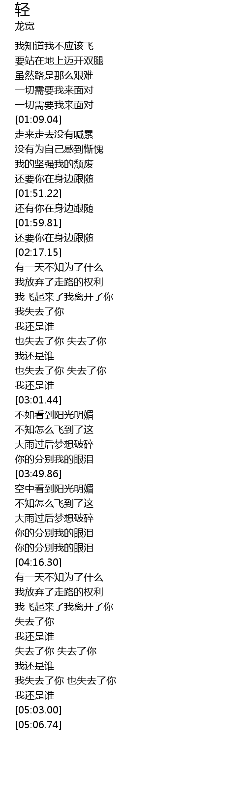 | [04:32.87] | wǒ fēi qǐ lái le wǒ lí kāi le nǐ |