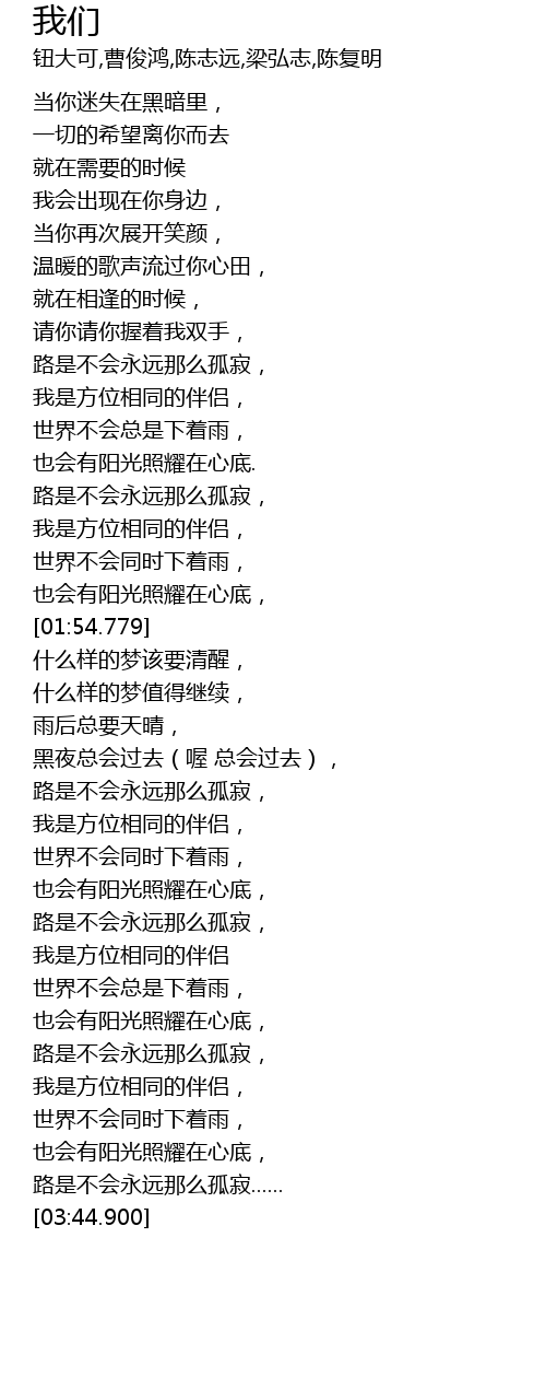 | [03:36.150] | 路是不会永远那么孤寂...... |